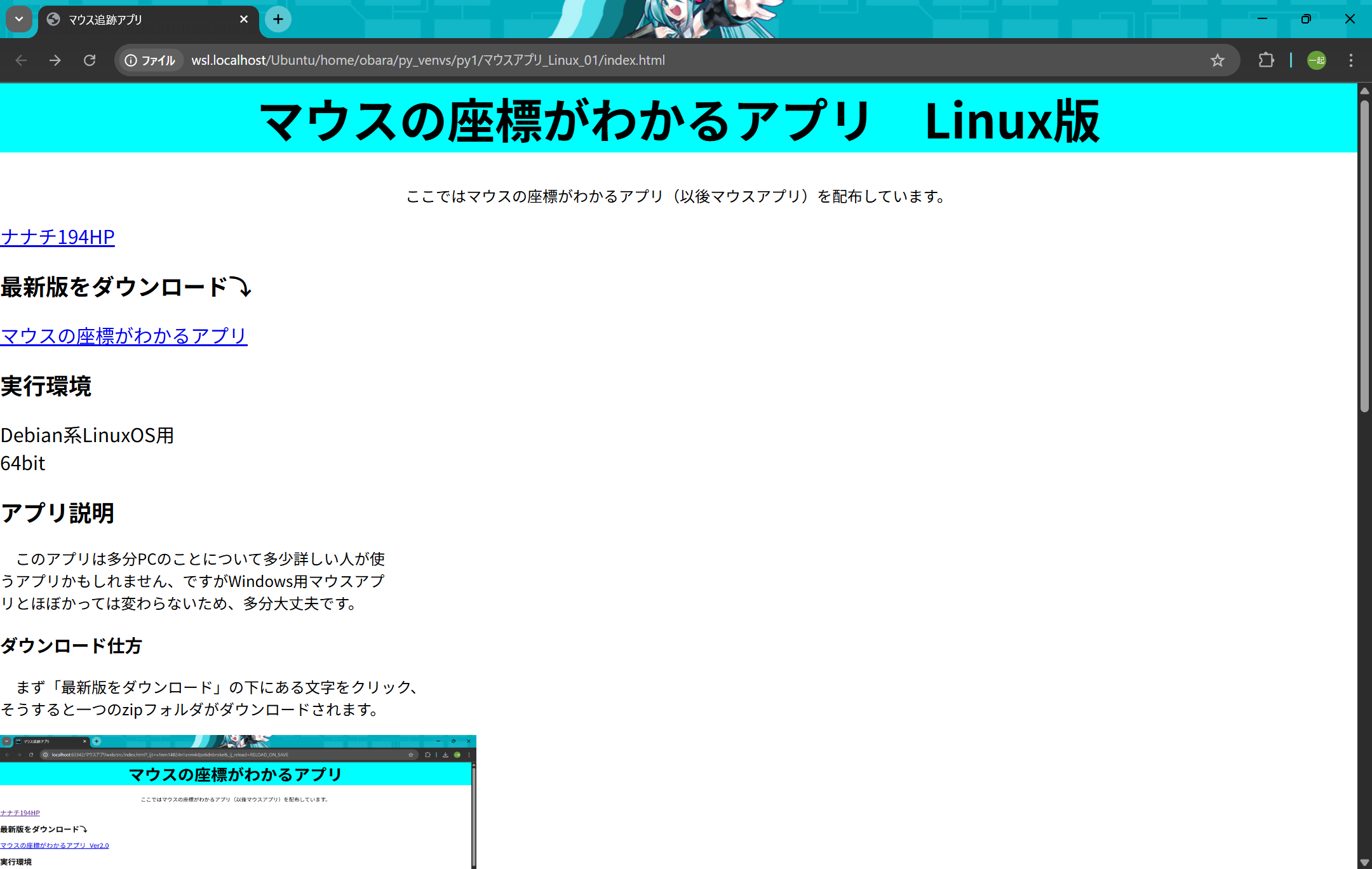 ここではマウスの座標がわかるアプリ(以後マウスアプリ)を配布しています。