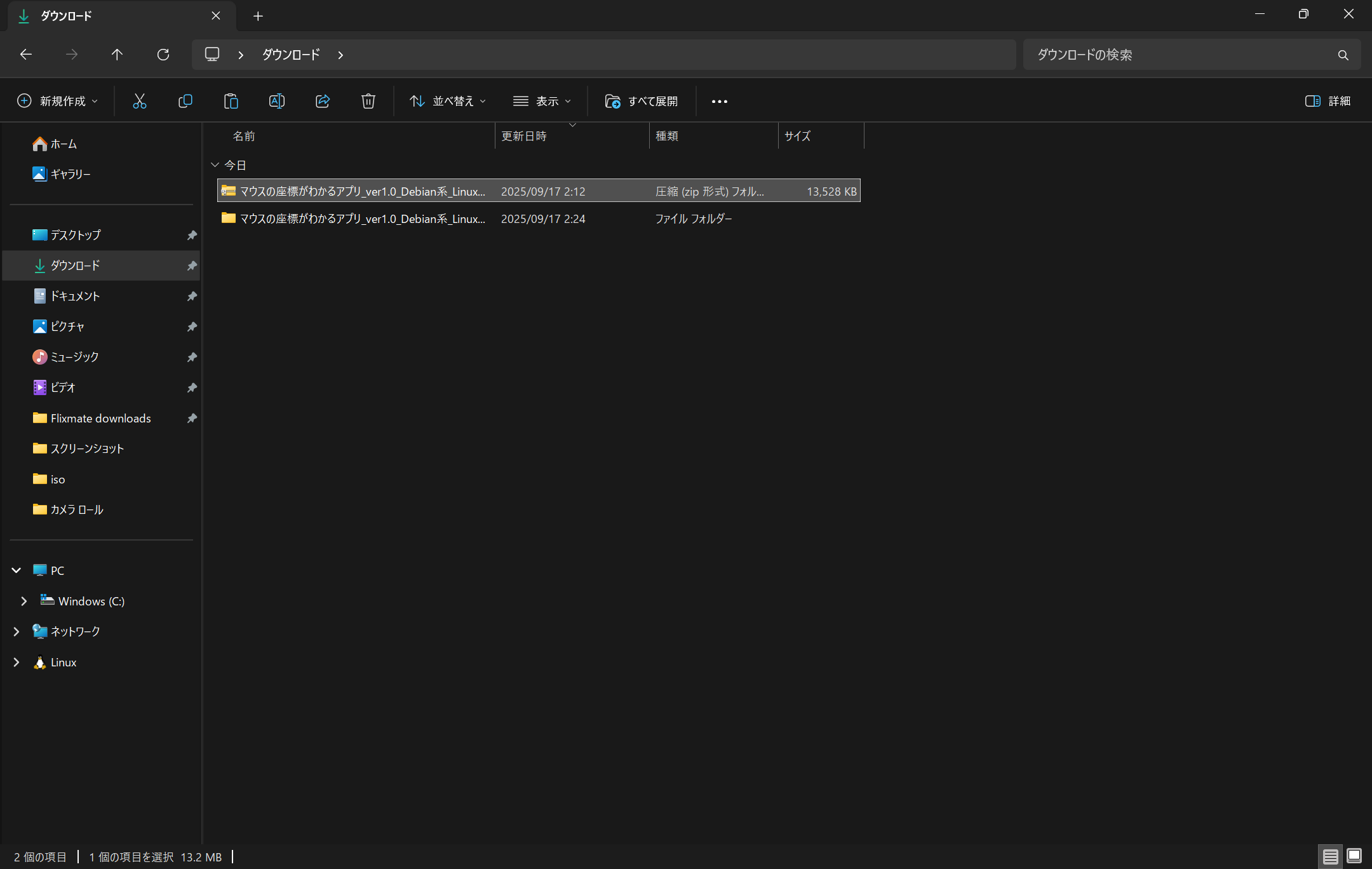 次にダウンロードできたzipファイルを展開します。 展開する方法は私の場合7zipで展開しています。
